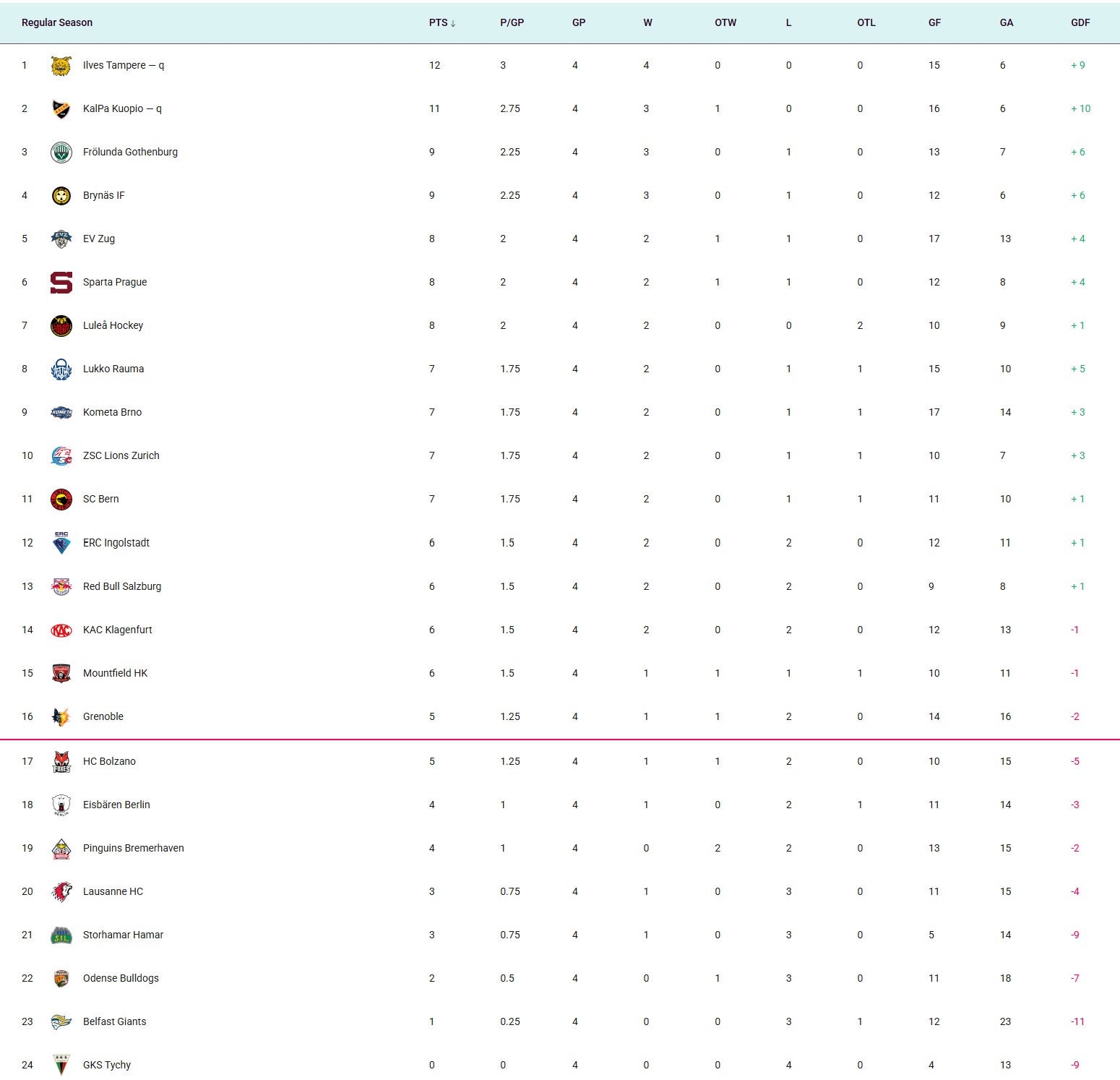 Die beiden Mannschaften trennen nur ein einziger Punkt. Die Lions kommen nach vier Spielen und zwei Siegen auf sieben Punkte, während Prag nach vier Spielen acht Punkte auf dem Konto hat und dabei nur einmal aus Verlierer vom Eis gehen musste. Die besten 16 Mannschaften der Ligaphase qualifizieren sich für die K.O.-Phase, die sie bereits letzte Saison erreicht haben. Die Lions haben sich bekanntlich den Titel schnappen können. Sparta schnupperte ebenfalls lange am Titel, musste dann aber im Halbfinale gegen Färjestad die Segel streichen.