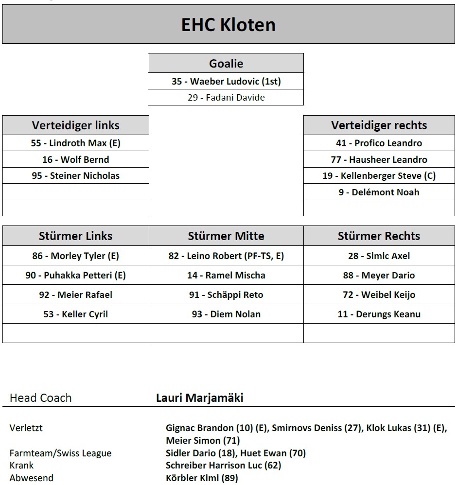 Aufstellung EHC Kloten