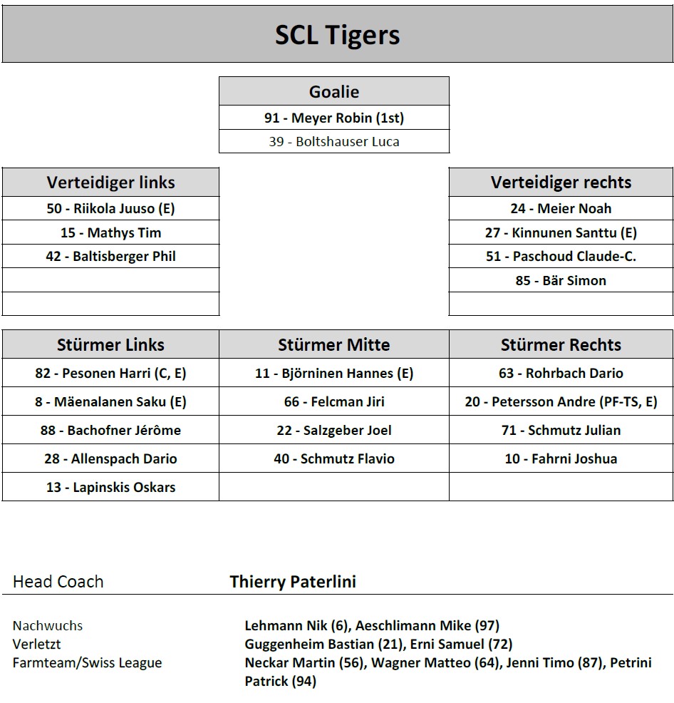 Aufstellung SCL Tigers