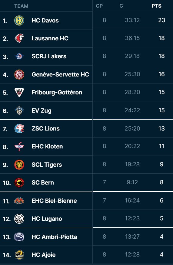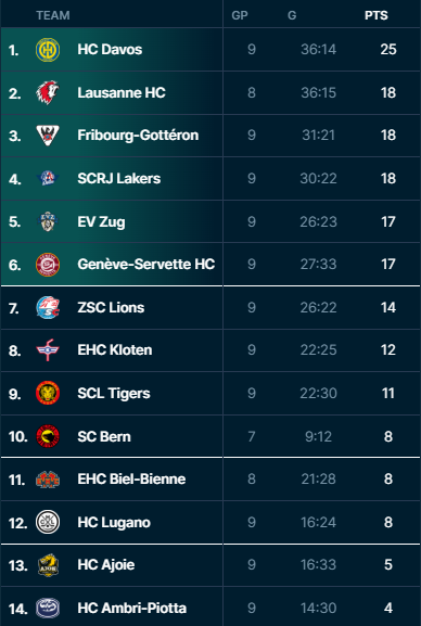 Die Zuger ziehen an Genf vorbei und stehen neu mit 17 Punkten auf dem fünften Rang. Die Lions bleiben mit 14 Punkten auf Platz sieben.