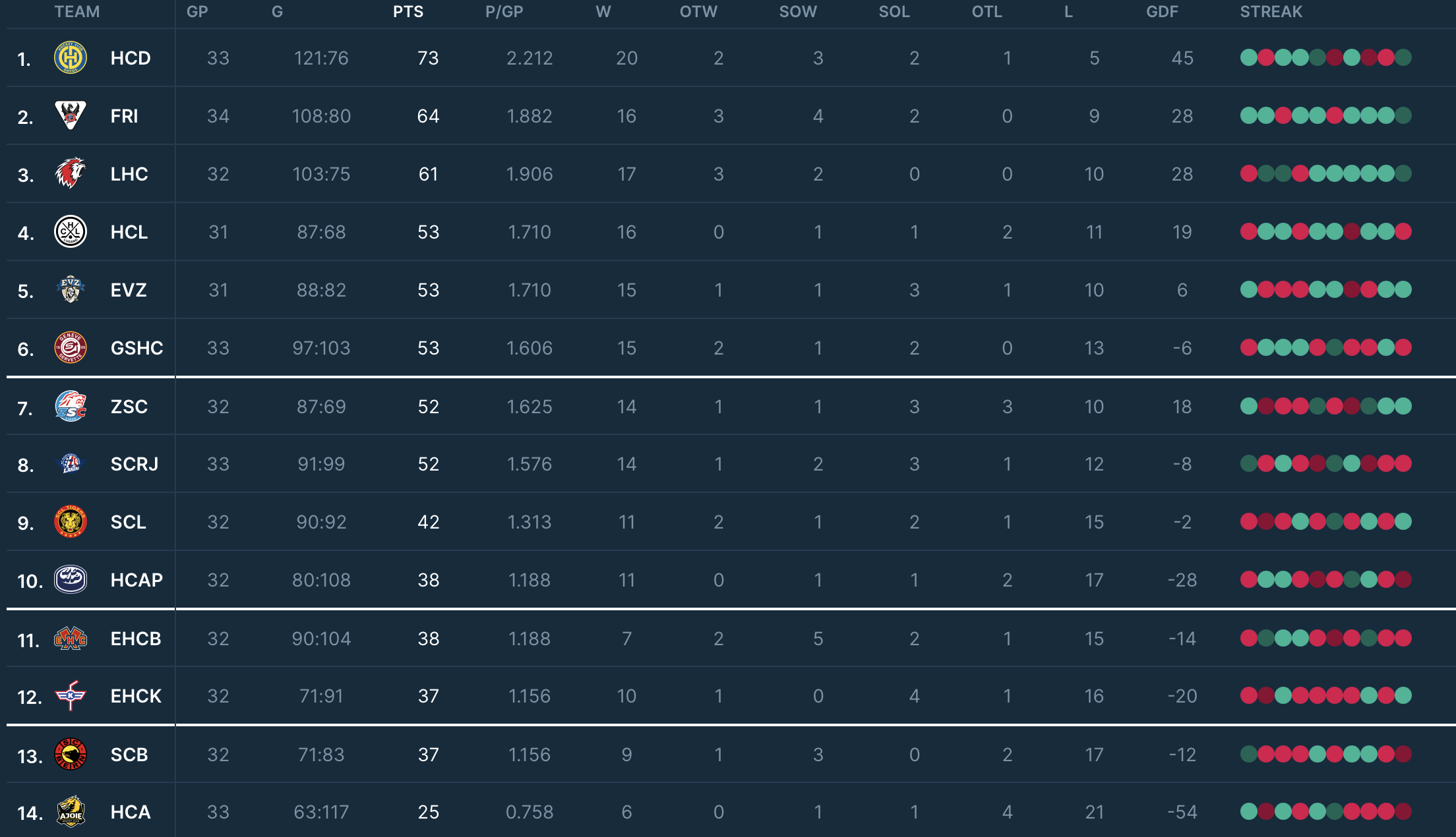 Die beiden Mannschaften befinden sich im engen Paket um den Playoff-Strich. Die Zuger haben zwei Spiele weniger absolviert als die Rapperswiler bei einem Punkt mehr. Kann der Gastgeber den EVZ überholen oder können die Gäste die Differenz vergrössern?