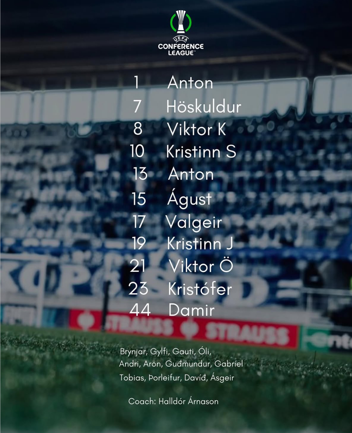 Breidabliks Startaufstellung heute besteht komplett aus isländischen Spielern, sie haben nur einheimische Spieler auf dem Feld stehen, ein einziger internationaler Spieler sitzt auf der Bank. Dieser ist Tobias Thomsen, ein 32-jähriger Däne.